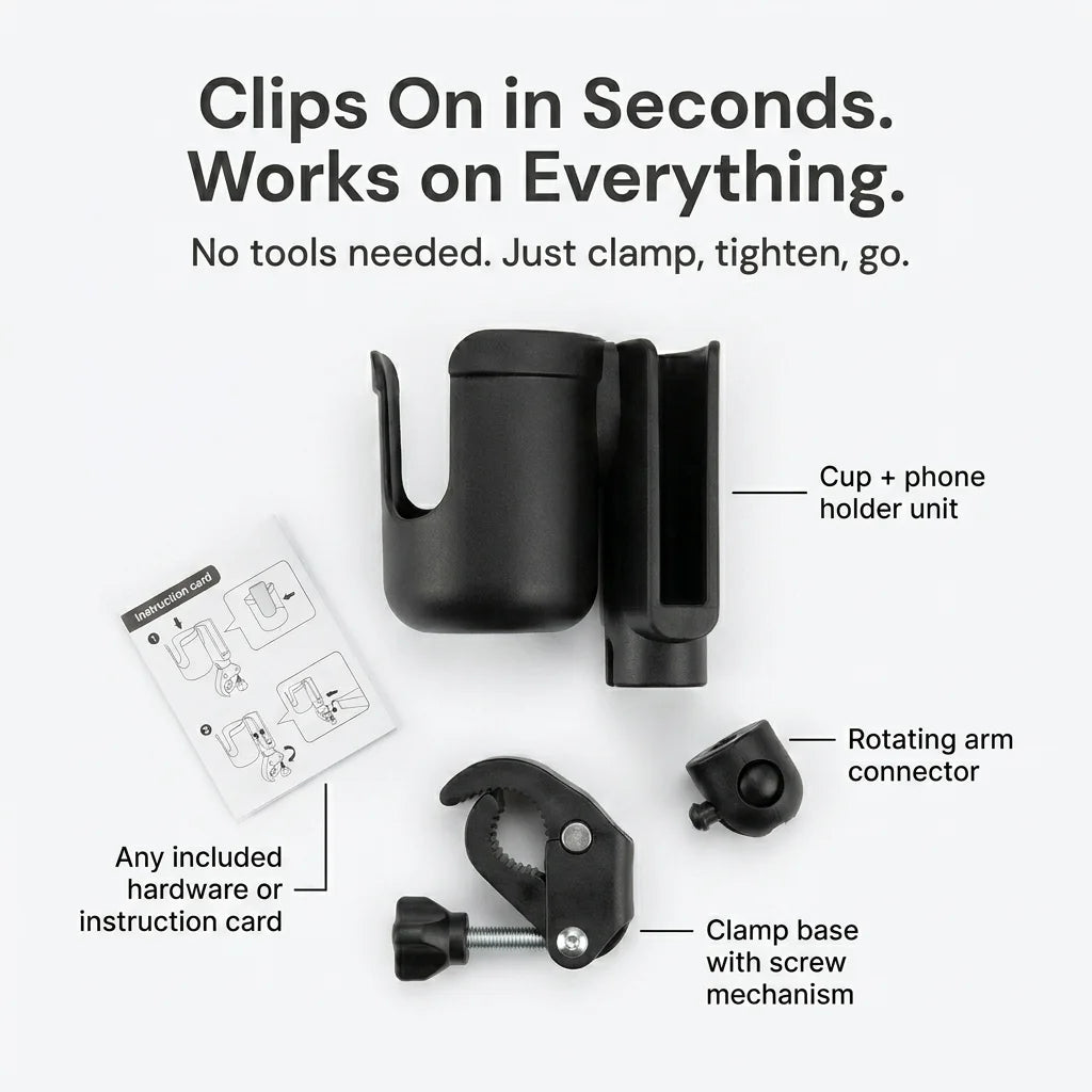 That’s why this stroller cup holder is built with a secure, anti-slip grip and stable design that keeps your drink, bottle, or cup firmly in place even on rough paths.